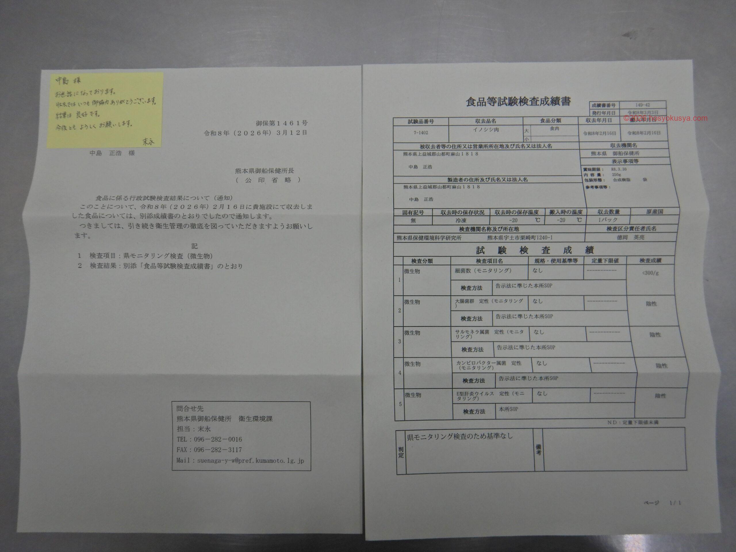 今期の衛生検査の結果が出ましたので結果を報告します。